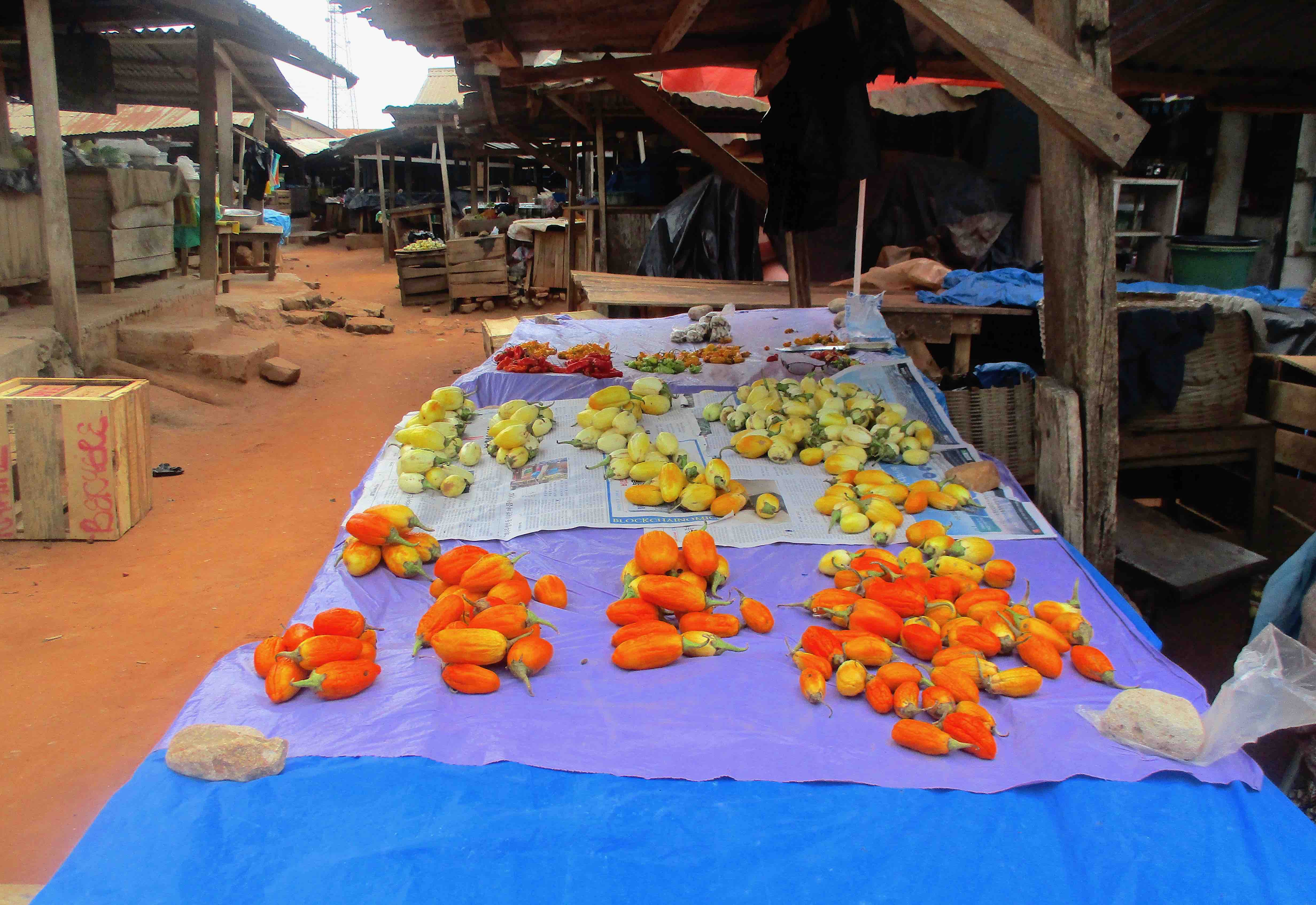 I have some pictures of my workplace. I sell at the market. I am a trader and I sell tomatoes and other things […and] that is my main source of income[…]. So even though I am disabled, I have to work for myself. This is what I do for a living […] and in a day I can get about 20 cedis or 30 cedis.